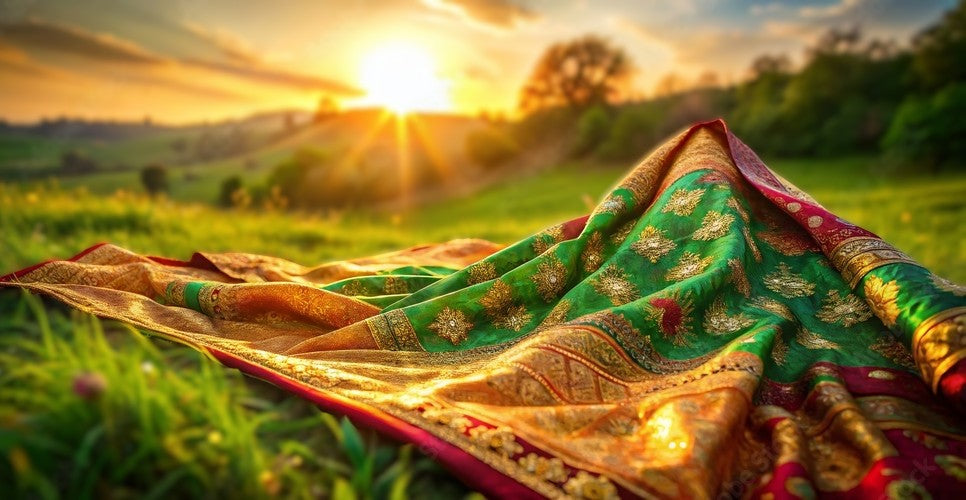 Cotton Silk Ilkal Saree with Star pattern – Green & Maroon with Mustard Pallu