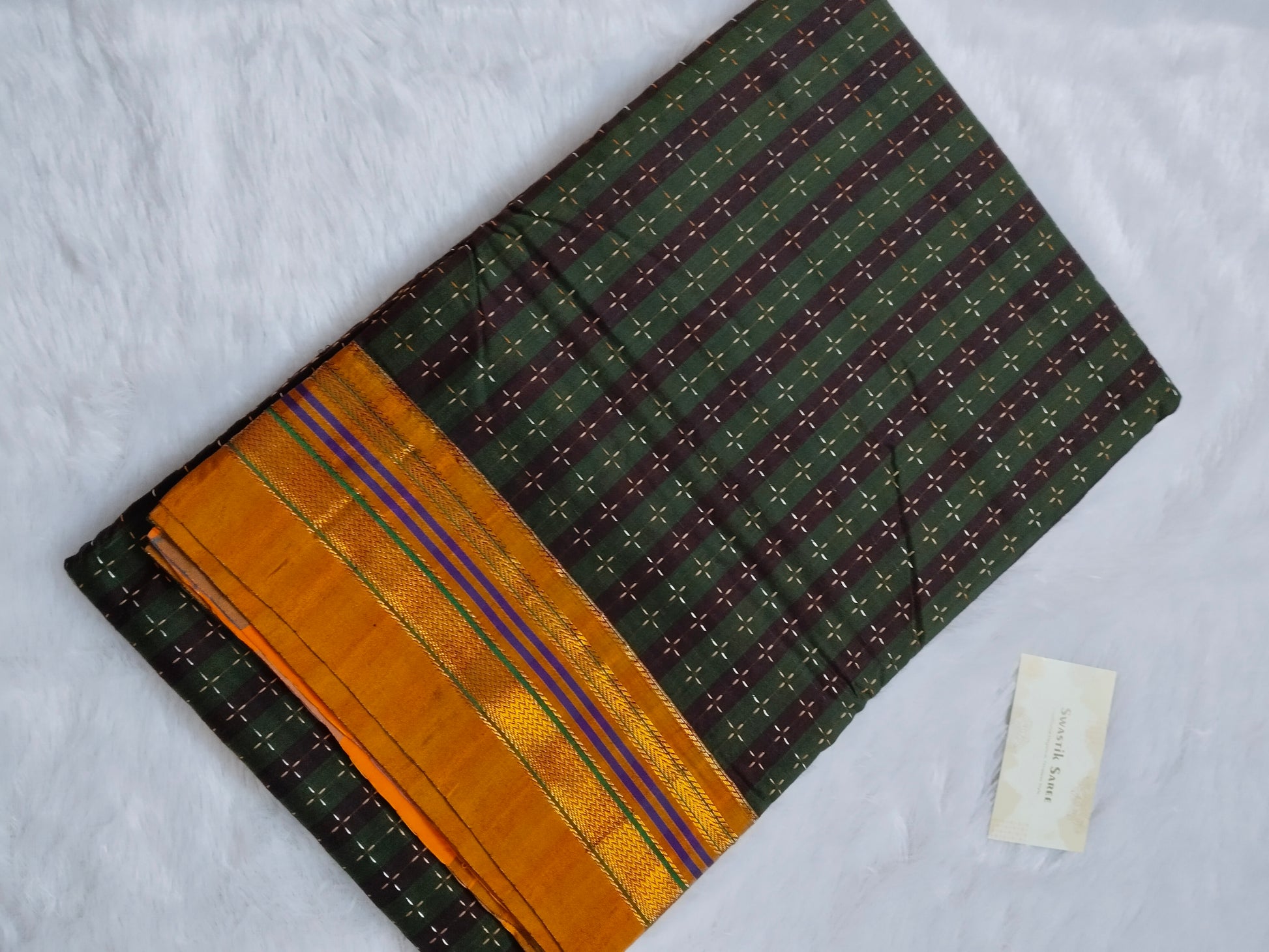 🎨 Color: Green & Maroon Body with Mustard Temple Pallu